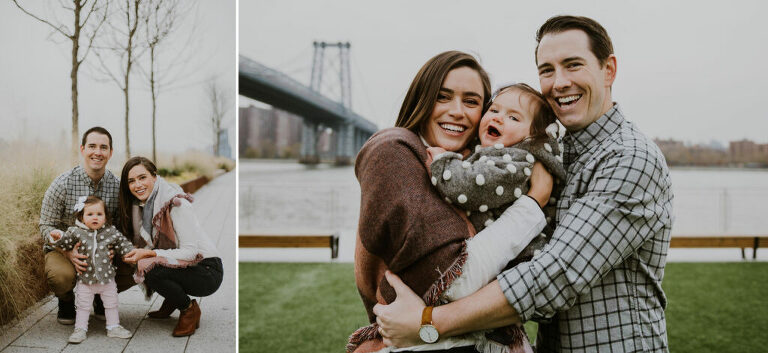 I met Millie and her parents on a brisk November afternoon, for a quick shoot by the waterfront at Domino Park. Millie had recently learned to walk and was very happy to toddle all around the boardwalk. Super adorable! I mean, look at this crew. All my families are so photogenic. Magazine-ready.